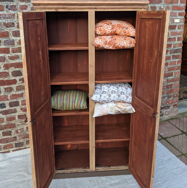 Petite armoire en bois 2 portes. Elle a été entièrement restauré dans notre atelier afin de lui redonner un coup de peps. Sa couleur neutre, sa taille permettant de se glisser dans les moindres coins d’une pièce, ses différentes planches permettant un maximum de rangement.
