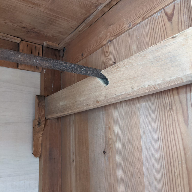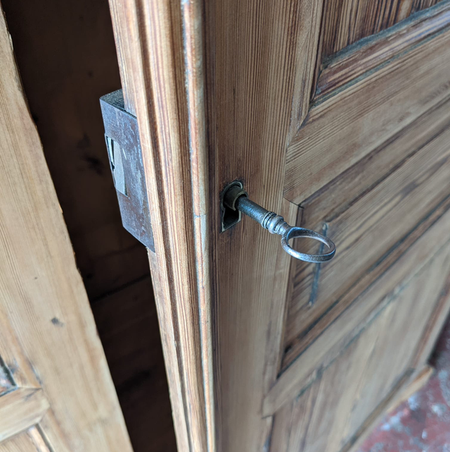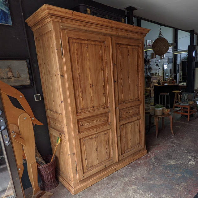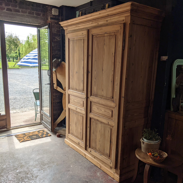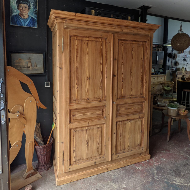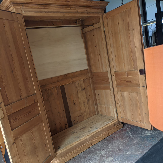 Grande armoire en pitchpin 2 portes, barre de dressing à l’intérieur pour ainsi accrocher manteaux dans une entrée,