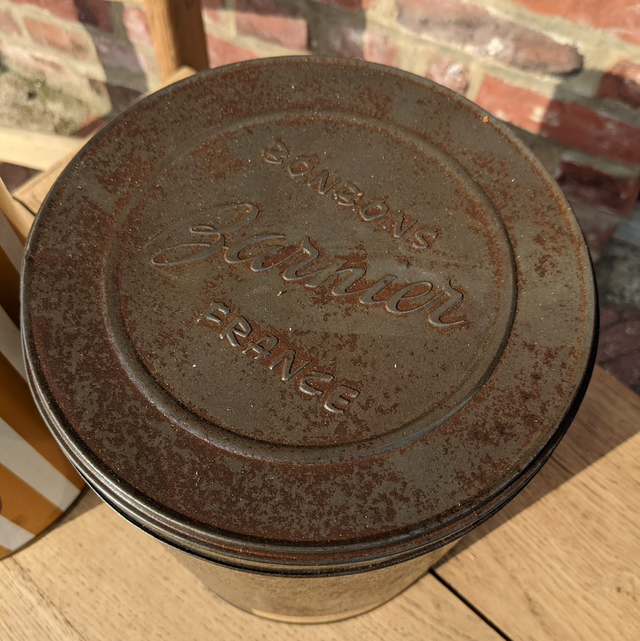 Ancienne boite de bonbons publicitaire de la marque « Barnier » datant des années 50 en métal