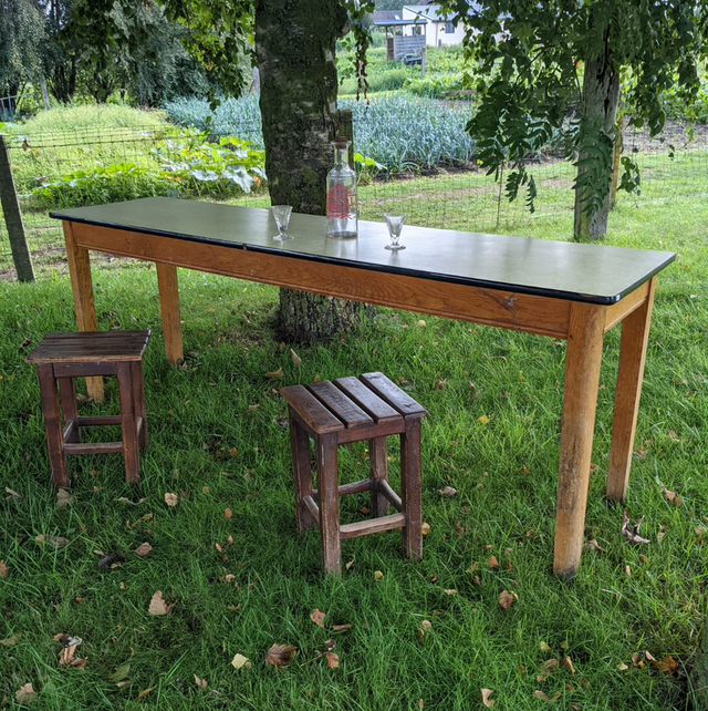 Cette table est une belle pièce d’époque qui se marie parfaitement dans une déco tendance. Elle ne prend pas de place car elle n’est pas large mais elle est très fonctionnelle.